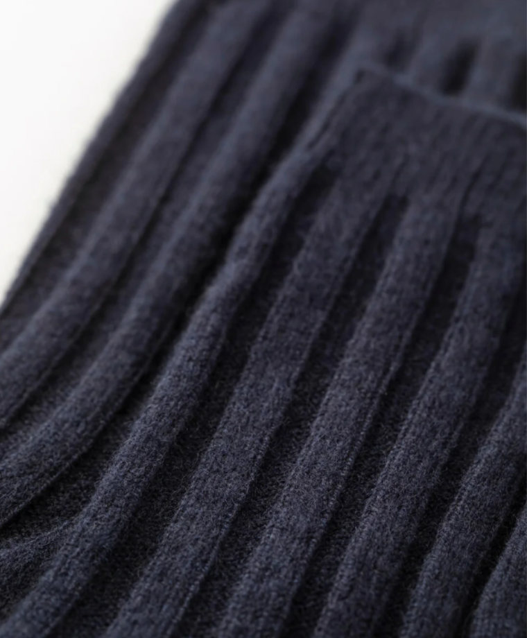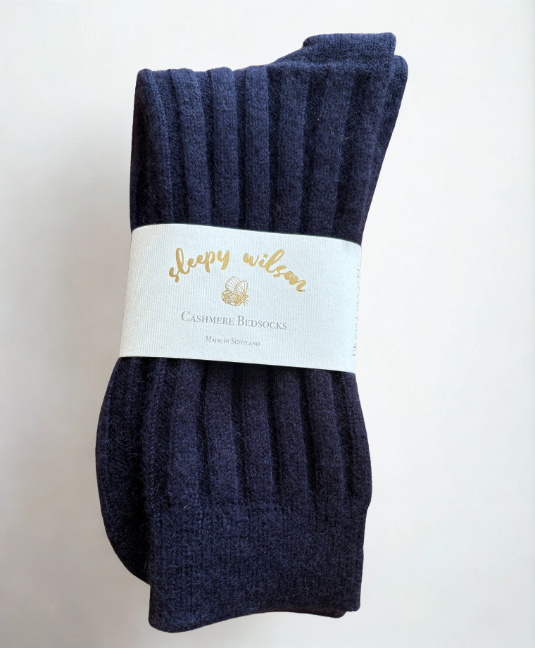 Bed Socks | 100% Cashmere | Dark Navy Ribbed