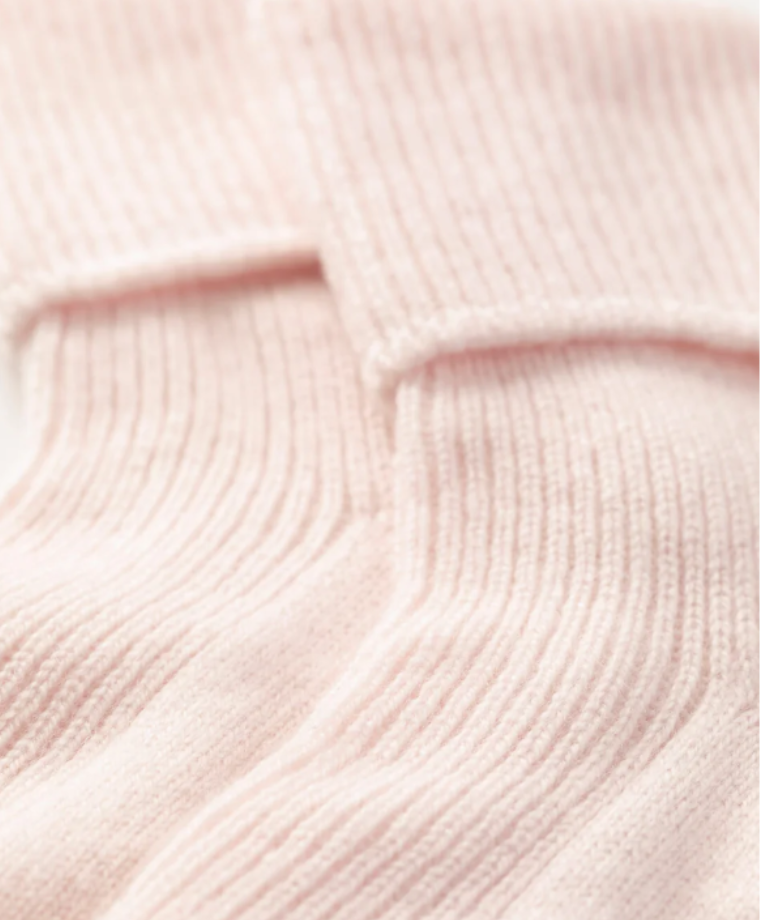 Our super soft bed socks are made from a 2 ply cashmere where two individual strands are twisted to create the yarn, producing a durable, lightweight but super-soft knit.