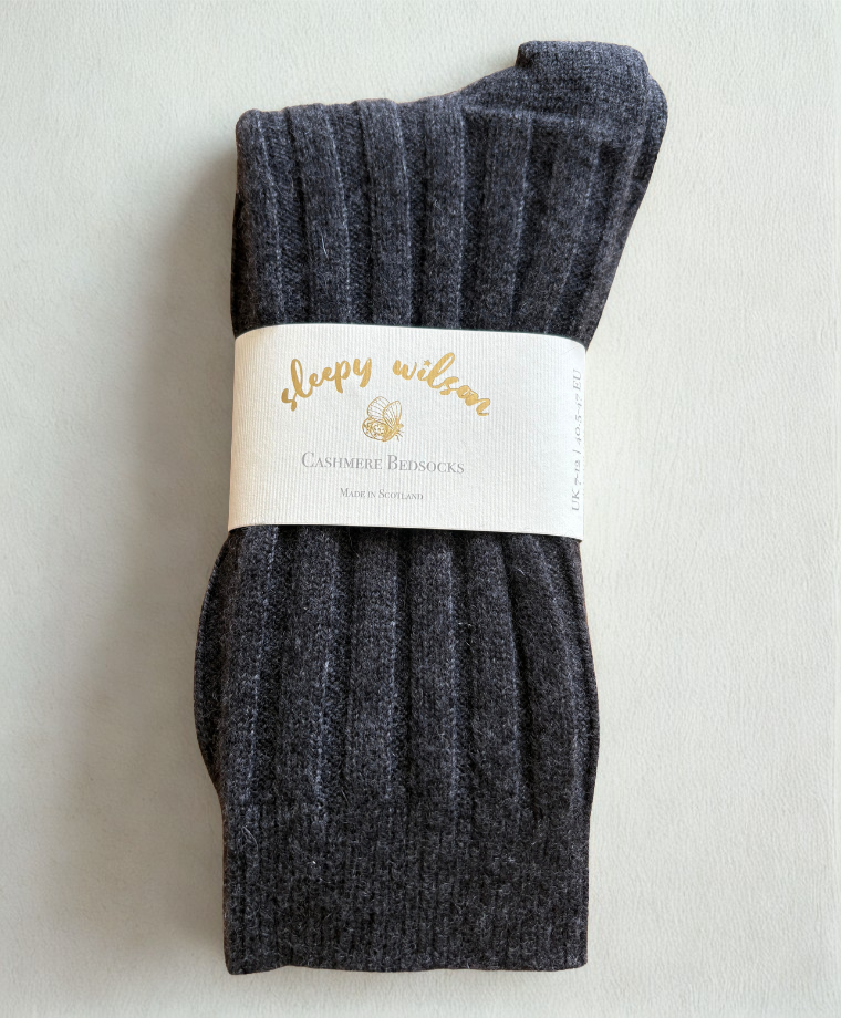 Bed Socks | 100% Cashmere | Charcoal Grey Ribbed