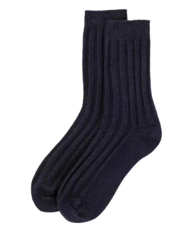 Bed Socks | 100% Cashmere | Dark Navy Ribbed
