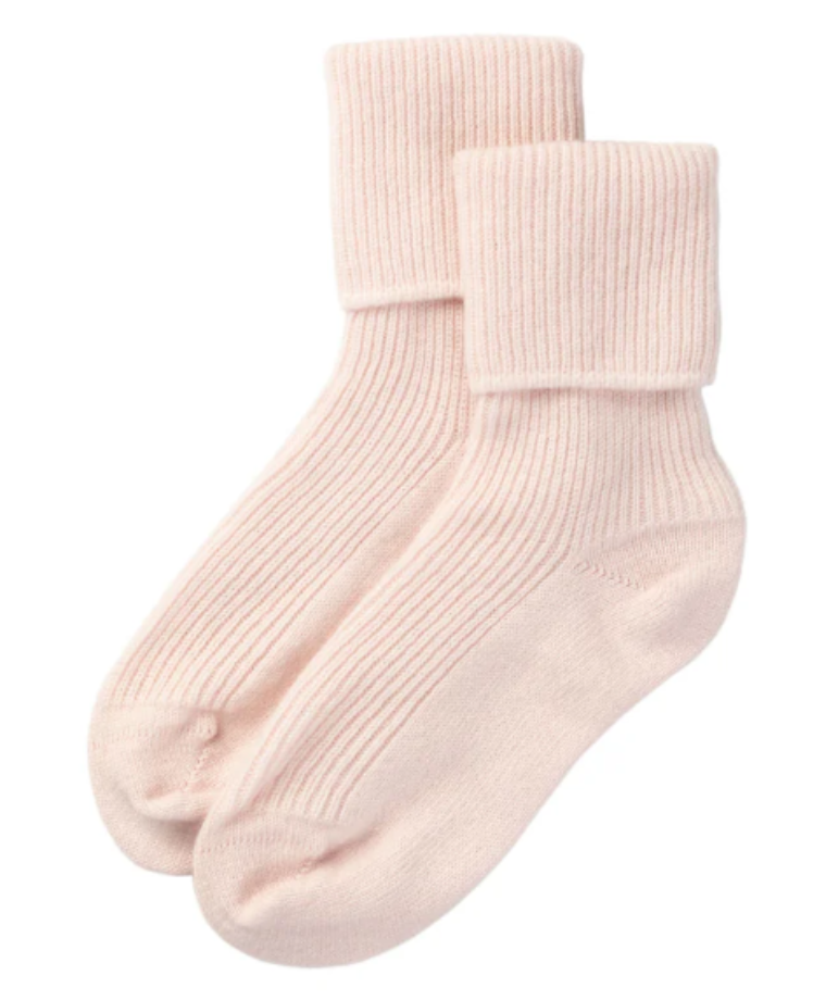 Our super soft bed socks are made from a 2 ply cashmere where two individual strands are twisted to create the yarn, producing a durable, lightweight but super-soft knit.