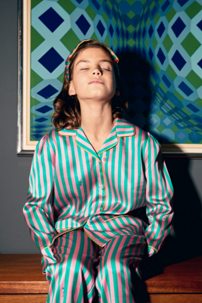 Amelie Flamingo Stripe Girls Silk Pyjama Set