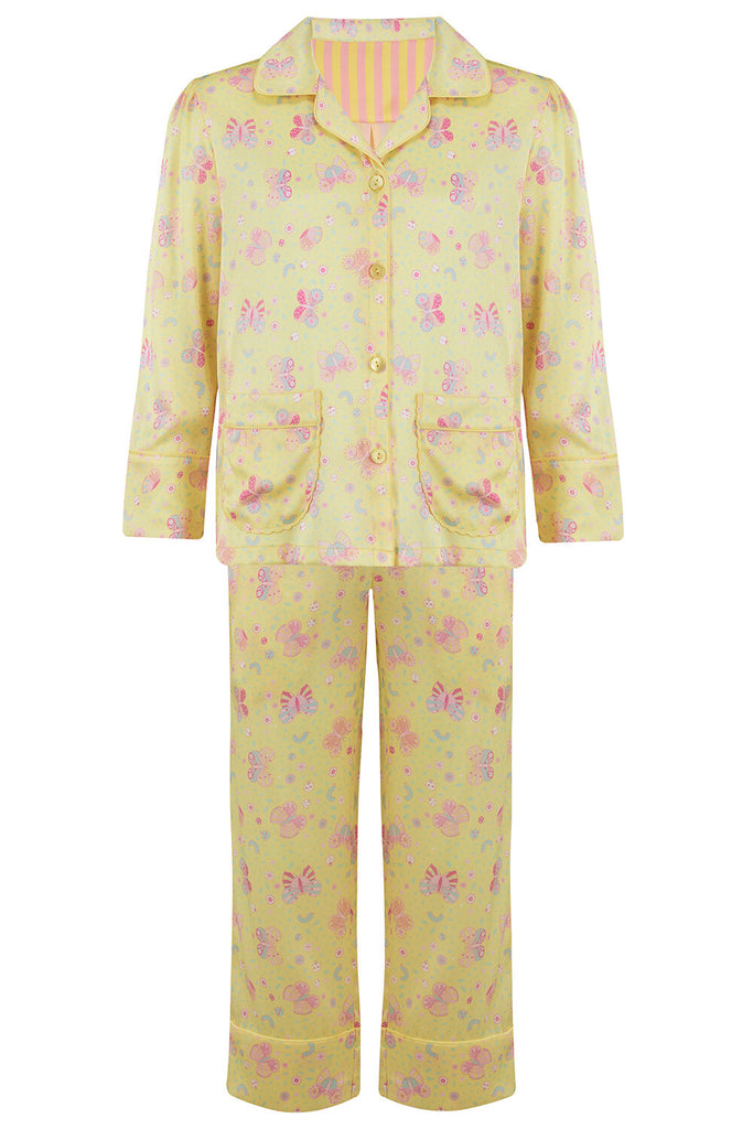 Amelie Lemonade Butterfly Girls Silk Pyjama Set