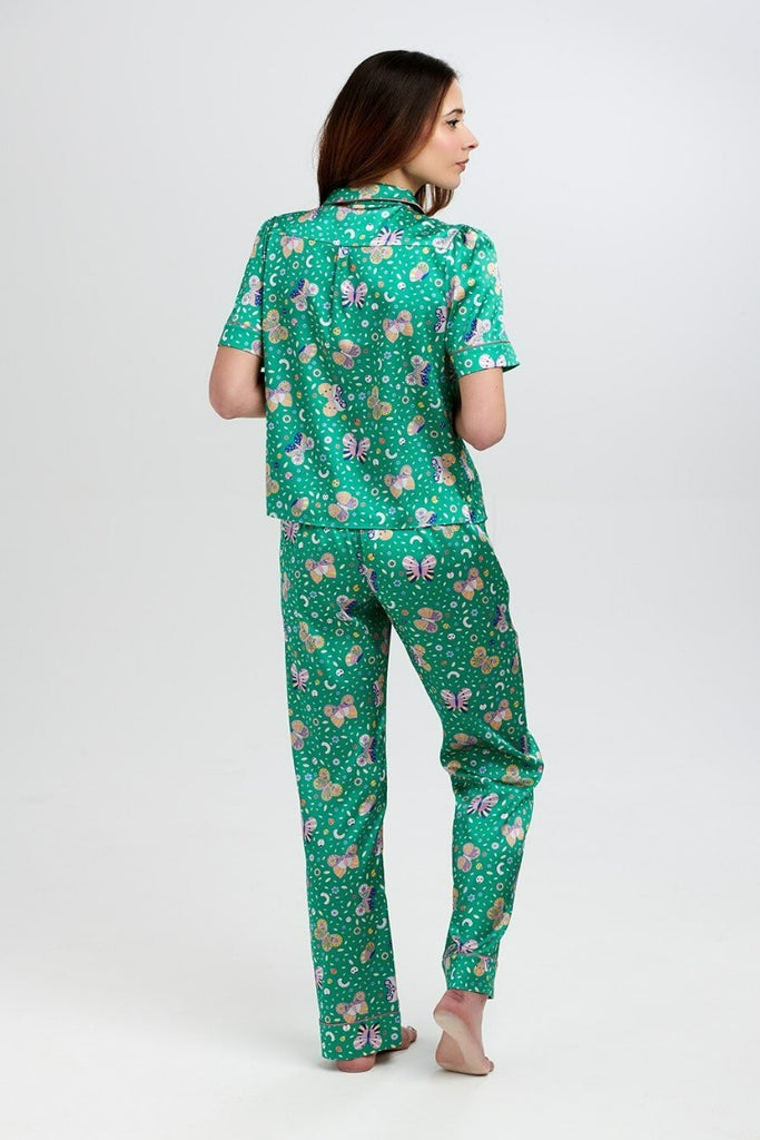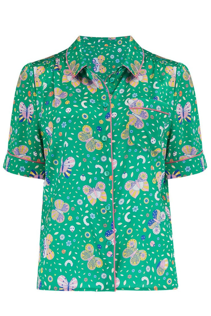Perhaps one of our favourites, the elegant Poppy Silk Blouse in our Rainforest Butterfly print with a pretty shoulder gathering for the perfect fit. Made from the finest 19 momme silk but with enough stretch to allow for easy movement in bed. Looks equally as stylish in the bar as well as the home.