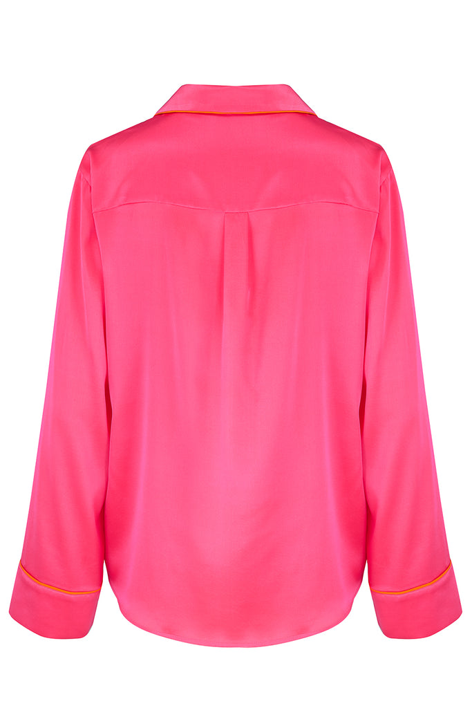 Sample Set - our double sided Aurelie Silk shirt and Florence Silk Trouser in Party Pink with Vermillion Orange internal and trim.