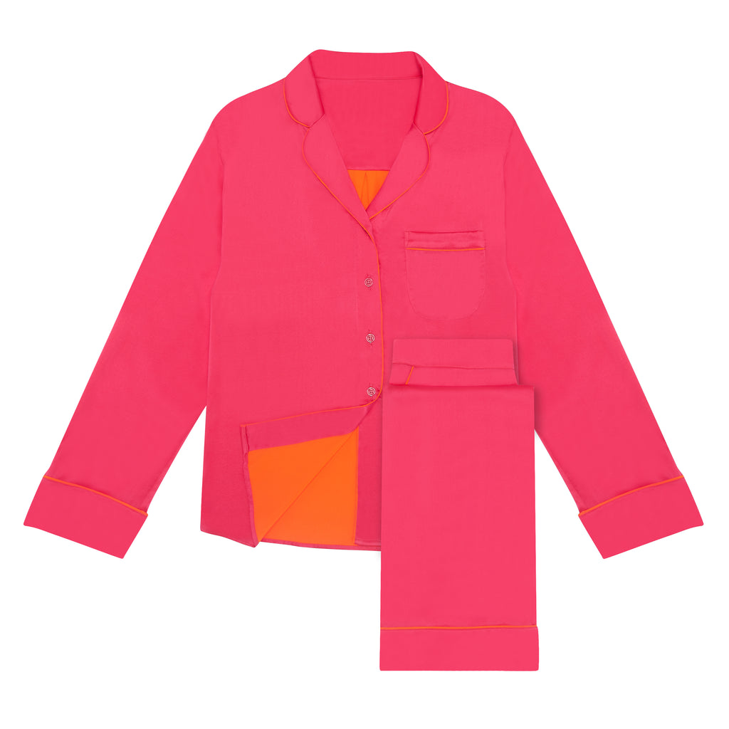 Sample Set - our double sided Aurelie Silk shirt and Florence Silk Trouser in Party Pink with Vermillion Orange internal and trim.